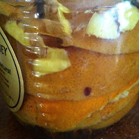 - Smush four or five grapefruit skins into a quart jar. This will take some effort.
